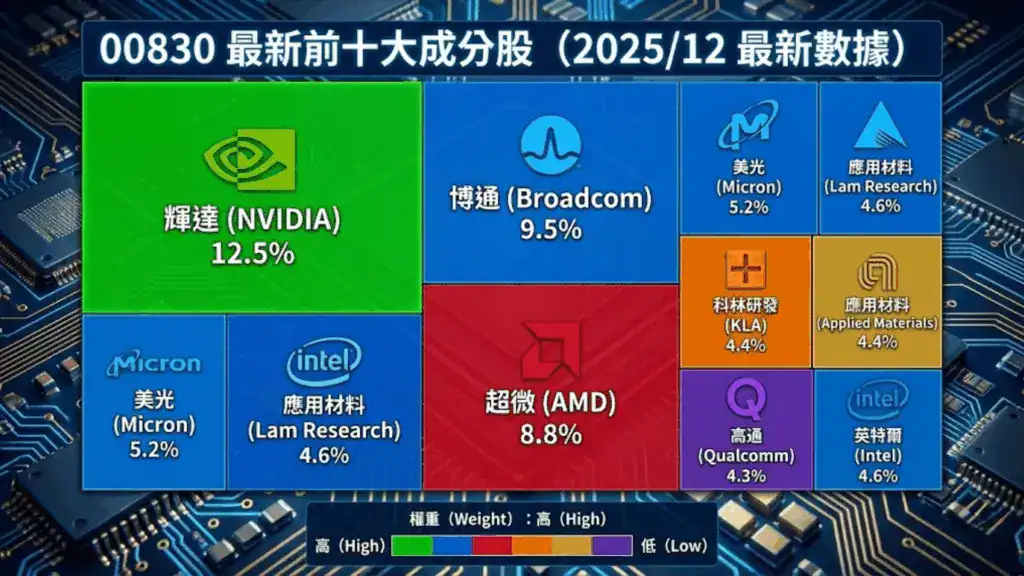 00830 最新前十大成分股(2025/12 最新數據)表格