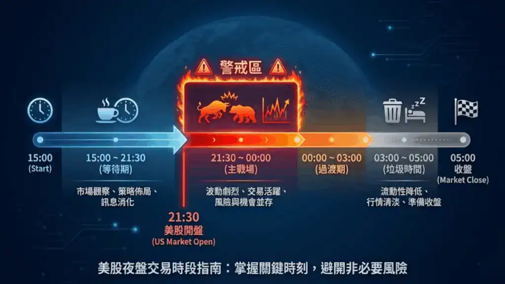 - 21:30 ~ 00:00 (主戰場):美股現貨開盤,波動最大,是當沖獲利的黃金時刻。